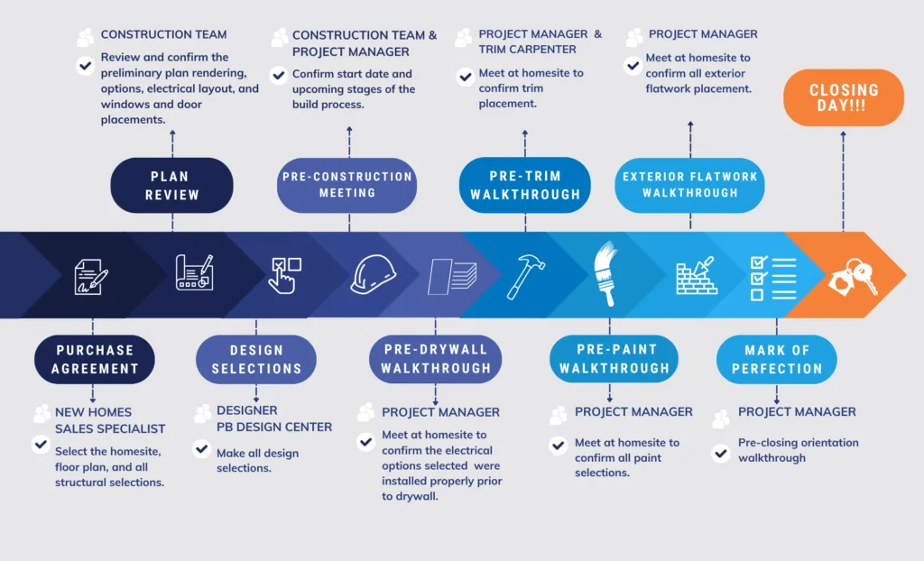 Meet with your project manager and the construction team at the homesite to review the finalized plans, confirm the start date, and walk through each stage of the construction process. This meeting ensures everyone is aligned for a smooth build from start to finish.